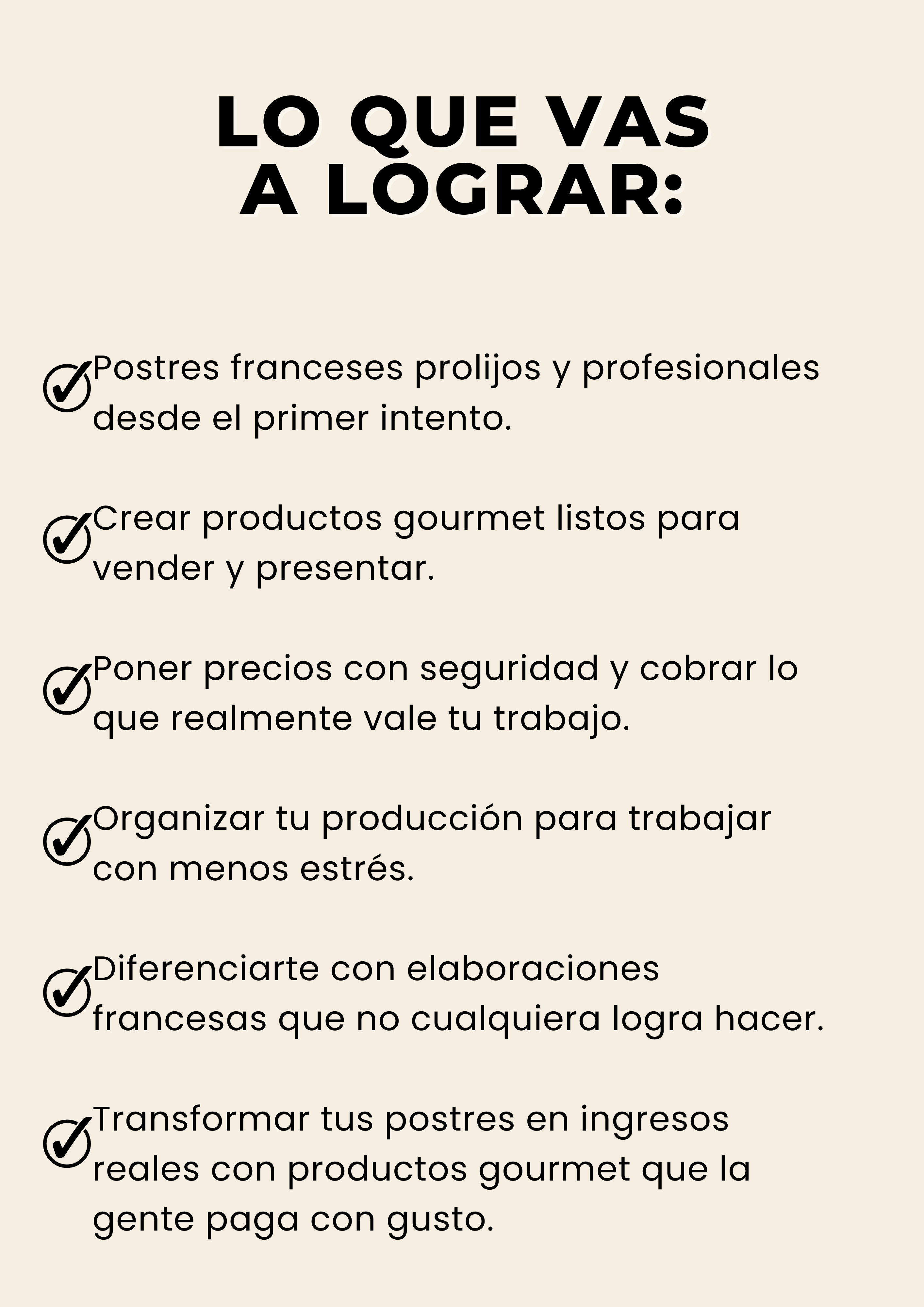 Sí. Vas a aprender a crear productos gourmet, presentarlos mejor, calcular precios y diferenciarlos en el mercado para vender más.